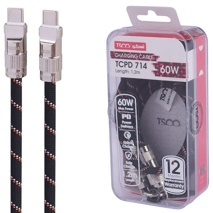 کابل دو سر تایپ سی فست شارژ 60 وات تسکو TCPD 714 طول 1.2 متر قابلیت بند موبایل شو