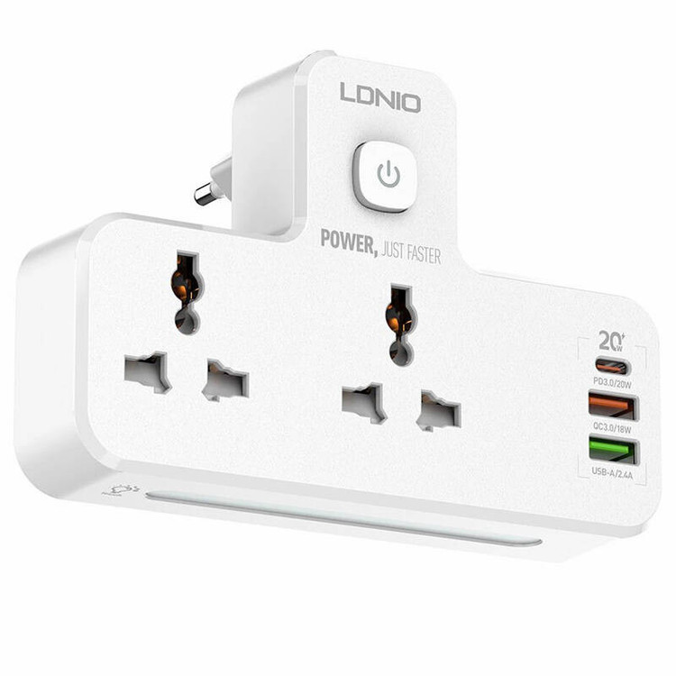 کمپانی الدینیو محصول چند کاره SC2311 را طراحی کرده که با پشتیبانی از قابلیت استفاده به عنوان چند راهی، شارژر و چراع خواب روانه بازار شده است. این دستگاه از بدنه ای به جنس پلی کربنات ساخته شده که استحکام کافی را در برابر ضربه، فشار و حرارت ارائه می دهد. دو عدد پریز بر روی بدنه تعبیه شده که ضمن نیاز به استفاده از مبدل با انواع دو شاخه ها سازگاری دارد و براساس ولتاژ ورودی 100 تا 250 ولت از اتصال دستگاه های مختلف الکتریکی پشتیبانی می کند. این پریزها همچنین مجهز به محافظ کودک نیز می باشند و کلید فیزیکی روشن و خاموش جهت قطع جریان برق نیز بر روی بدنه قرار دارد. یک لامپ LED برای این چندراهی برق در نظر گرفته شده که فقط با یک لمس فعال و با نور ملایم سفید رنگ خود به عنوان چراغ خواب و یا روشنایی در محیط های تاریک قابل استفاده خواهد بود. بر روی این دستگاه دو پورت USB و یک درگاه Type-C قرار دارد که برای اتصال و شارژ انواع گوشی موبایل، تبلت و … مناسب می باشند و امکان شارژ همزمان و ایمن چند دستگاه را ارائه می دهند. پورت USB 1 از فناوری شارژ سریع نسخه QC3.0 پشتیبانی می کند و با جریان عبوری متغیر 3 آمپر در ولتاژ 5 ولت، 2 آمپر در ولتاژ 9 ولت و 1٫5 آمپر در ولتاژ 12 ولت انواع گجت ها را با سرعتی مطلوب شارژ خواهد کرد. پورت دیگر USB از فناوری Auto-ID بهره برده و با حداکثر شدت جریان 2٫4 آمپر در ولتاژ 5 ولت عملیات شارژ رسانی را با سرعت و ایمنی مناسب انجام می دهد. شدت جریان خروجی پورت تایپ سی نیز به صورت متغیر برابر با 3 آمپر در 5 ولت، 2٫22 آمپر در 9 ولت و 1٫67 آمپر در 12 ولت می باشد که با توان خروجی 20 وات قادر به شارژ دستگاه های سازگار است. LDNIO SC2311 به فناوری Power Delivery و چیپست هوشمند مجهز شده که با تشخیص و متناسب سازی جریان و ولتاژ دستگاه متصل، از ایجاد آسیب باتری در برابر نوسانات ولتاژی، بار اضافی جریان و برق، اتصالات کوتاه و دمای بیش از حد جلوگیری خواهد کرد.