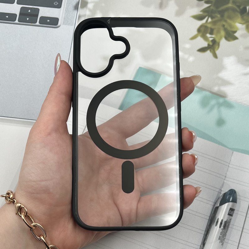 قاب گوشی iPhone 17 آیفون Magsafe مگ سیف دار اورجینال Clear Case شفاف لاکچری مشکی